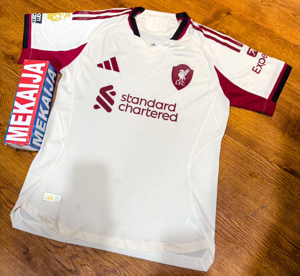As it is tradition, the Adidas Liverpool 25-26 home football shirt is red, combined with white logos. The red color is officially called “Strawberry Red“.